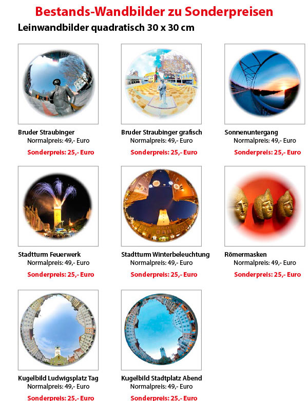 Mit Ihren Straubinger Lieblingsorten, in Ihrem Wunschformat, in der Ausführung (gerahmt, Leinwand, Acrylglas, Plattendirektdruck, etc.) wie immer Sie es wünschen. |